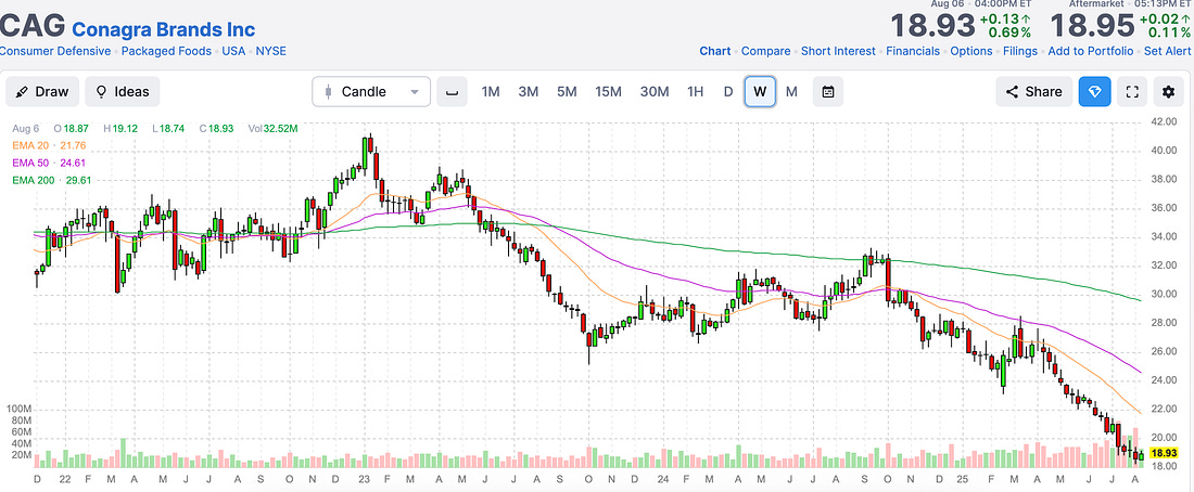 You are a free subscriber to Me and the Money Printer. To upgrade to paid and receive the daily Capital Wave Report - which features our Red-Green market signals, subscribe here. Dear Fellow Traveler: Today, over at Theotrade, a viewer asked me what I thought of several consumer staple stocks. One of the names: Conagra Brands (CAG). This is the company behind Orville Reddenbacker, Slim Jim, and Reddi-Wip. You know… the bare essentials. So, I pulled up the chart… And this one hit my reality like a brick to the head. When you’re constantly watching the high-flying technology stocks that are detached from their valuations… You start to forget that real companies operate on real financial metrics. The working capital metrics and interest stress on a lot of these stocks aren’t that great… Many people will look at the headlines and argue that Conagra is under pressure because of tariffs. But that trend line from the top of 2022 tells the real story. As we see, when we’re in the back half of a liquidity cycle, the shift goes into defensives in the final stages, before people start buying up duration and preparing to eat out of bean cans… Then, when the liquidity cycle bottomed out and fiscal and monetary accommodation started… money rotated to higher beta stocks. That because with each market crisis, more capital gets injected and money chases the highest outcomes possible… That’s not in defensives… That’s in NVIDIA and META… The money instantly rotates back into the Magnificent 7 - the leverage, too. All the while, with higher interest rates remaining elevated… Now, here’s Conagra, and ratios that just make me feel like something’s really off… This company makes stuff… they don’t engage in financial engineering or reach into another person’s pocket… I understand that this is still a great company. I eat a lot of their popcorn. And I can understand some of their ratios and why they are where they are. They’re an inventory-heavy model in grocery and frozen foods. I accept that… I know that leverage is supposed to be high in this sector and it’s high based on all those books that I was forced to read. Cash flow is stable. Lenders aren’t freaking out. Bankruptcy isn’t happening… but here's what stopped me cold. That Altman Z-Score is sitting at 1.54… squarely in the distress zone. For context, anything under 1.8 signals potential bankruptcy within two years. Yes, the liquidity numbers are tolerable. But my lord, if interest rates GO UP somehow, that debt-to-cash is kind of crazy. They’ve got to cover their debt. So, they’re fine… so long as nothing goes wrong… But what can go wrong? Refinancing problems. Consumer spending. Floating-rate debt. Their next major test? Refinancing anything from five years ago that was sitting in the ZIRP era in the 6% range. This is the case study of what happens when the money printer runs. When they bail out the system over and over again, and there’s this inability to realize that when they’re bailing out leveraged hedge funds to ensure stability in the bond markets (as Conagra might face more problems), This is the long tail of the zero-rate era. Years of borrowing cheap… now crashing into a wall of yield. While Tesla trades at fairy tale multiples, companies that actually make things – and feed people – are getting strangled by the Fed's war on inflation. Conagra borrowed cheaply for a decade, and now the music has stopped. This isn’t just a Conagra story. This is what happens when the system injects trillions to save the leveraged class, prints 40% of all dollars in existence, blames inflation on “supply chains,” and then chokes the economy with short-term T-bill spikes. We’re watching the slow-motion consequences. One balance sheet at a time. Conagra – maker of Slim Jims and frozen dinners – might be the canary in the coal mine for what's coming to the entire leveraged economy. It’s gonna get interesting when the liquidity cycle peaks next year… Stay positive, Garrett Baldwin About Me and the Money Printer Me and the Money Printer is a daily publication covering the financial markets through three critical equations. We track liquidity (money in the financial system), momentum (where money is moving in the system), and insider buying (where Smart Money at companies is moving their money). Combining these elements with a deep understanding of central banking and how the global system works has allowed us to navigate financial cycles and boost our probability of success as investors and traders. This insight is based on roughly 17 years of intensive academic work at four universities, extensive collaboration with market experts, and the joy of trial and error in research. You can take a free look at our worldview and thesis right here. Disclaimer Nothing in this email should be considered personalized financial advice. While we may answer your general customer questions, we are not licensed under securities laws to guide your investment situation. Do not consider any communication between you and Florida Republic employees as financial advice. The communication in this letter is for information and educational purposes unless otherwise strictly worded as a recommendation. Model portfolios are tracked to showcase a variety of academic, fundamental, and technical tools, and insight is provided to help readers gain knowledge and experience. Readers should not trade if they cannot handle a loss and should not trade more than they can afford to lose. There are large amounts of risk in the equity markets. Consider consulting with a professional before making decisions with your money. |