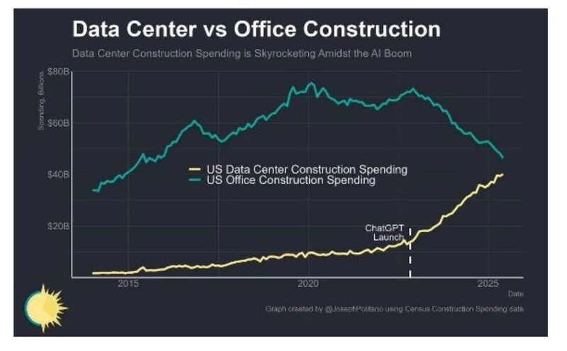 You are a free subscriber to Me and the Money Printer. To upgrade to paid and receive the daily Capital Wave Report - which features our Red-Green market signals, subscribe here. Part I: Here Comes the AI Apocalypse for Grads and Middle Management...This is going to be a fascinating time to be alive...Dear Fellow Traveler, I graduated in 2004 with a journalism degree from one of the top programs in the country. You know what I found? Jack squat. No jobs. Anywhere. The internet had already torched my industry while I was still in class learning about inverted pyramids and AP style. Newspapers were dying. Magazines were shrinking. The smart people like Dave Weigel kept saying, "just start a blog." I went into competitive intelligence instead… I thought I'd seen disruption. I thought I understood what it meant when technology eats an industry. I was wrong. That was just the preview. What's coming now? Another level… don’t blink. So Long, Downtown OfficesI'm looking at a chart of data center construction spending versus office construction, and I'm wondering if I should laugh or start day-drinking. Data centers are going parabolic. The spending since ChatGPT launched has started to move on an incredible curve upward.... Meanwhile, office construction is flatlining and collapsing like my faith in Congress passing a law that prohibits their insider trading... You know what they're building in those data centers? The replacement of human ingenuity… Expect the next three years to be more economically radical than anything you’ve ever seen. I feel bad for anyone who is graduating from college now with a degree that they thought would lead them to six figures in their 20s. It’s probably not going to happen. Leaders told everyone to “learn to code…” They lied… Now, they’re going into debt with fewer options than ever… Tales from the TimesThe New York Times just ran a piece that should have been on the front page with sirens and flashing lights. Computer science majors… the golden children of the last decade… can't find jobs. They interviewed Manasi Mishra, who did everything right. She coded her first website in elementary school. She conducted advanced computing in high school. She got a computer science degree from Purdue University... The tech executives on social media promised her six figures, told her to "learn to code," and said it was the golden ticket. Her only callback? Chipotle. I’m not kidding… She got a call back to make burritos. She made a TikTok about it that went viral with 147,000 views, explaining her plight… Then there’s Zach Taylor. He went to Oregon State. He applied to 5,762 tech jobs. He got 13 interviews and zero offers. McDonald's (MCD) rejected him for "lack of experience." The New York Times found that CS and computer engineering majors now have unemployment rates of 6.1% and 7.5%. That’s DOUBLE the rate of art history majors. Art. History. Majors. (I’ve warned about this…) The college kids are just the appetizers… The main course is bigger… So Long “Yes Men” and “No Men.”If you know a guy who’s been saying “No” to every idea to innovate for the last 18 months, that guy is about to lose his job. Middle managers (the guys who are “GOOD AT DEALING WITH PEOPLE”) are going away. These are the people whose entire job is protecting their fiefdom, scheduling meetings about meetings, and creating PowerPoints about corporate initiatives. CEOs and others will say that they won’t be on the chopping block - because they’re so valuable to the culture of the company. But once CEOs assess the bottom line and see that ChatGPT can replace 12 of these… they’ll be gone… especially if the CEO is incentivized on the bottom line… These people are the “Yes men” to the executives… And the “No men” to everyone else who's been pushing big ideas at them for years… These corporate barnacles who've been coasting on information arbitrage and bureaucratic friction? They're done. AI can coordinate better, communicate better, and it never asks for a raise or complains about the coffee... The entire management layer between the C-suite and actual workers (who you know… do shit) is about to evaporate faster than my interest in MMT theories. The Deflationary Tsunami Is Also ComingNow here's where it gets really interesting.. This is going to be terrifying for the Federal Reserve and the banking system… We're about to experience wage and technological deflation that will make the 1990s look inflationary by comparison. Remember the '90s? The Berlin Wall fell, China entered global markets, and the internet created e-commerce. That triple whammy created the biggest deflationary force in modern history. This? This is going to be BIGGER. In the '90s, we still needed humans to do most things. We just got more efficient at moving goods and information. Now we're eliminating the humans entirely. A two-person startup with advanced AI skills can produce more content, more ideas, more videos, more anything than a large public company with over 400 employees… In three days, the startup company can achieve what the legacy one takes a month to do. The startups don't need HR departments, compliance officers, or efficiency consultants that meet once a month... They have code, AI, and maybe really good Rifle Coffee. Massive headquarters? Not needed. Middle management? No such thing… HR departments? Replaced by a chatbot named Susan. You think they spend weeks and months planning or fire away over and over again until something works… They hate the word “No.” Corporate hierarchy? Gone… replaced by lateral cooperation and pure profit shares… When your competitor has 1% of your overhead and 10x your productivity, you're not competing… you’re just an inefficient, bloated, meeting-obsessed corporation that thinks a moat will protect you. But spoiler alert: There is no moat. AI and talent just drained it. Get ready… In 