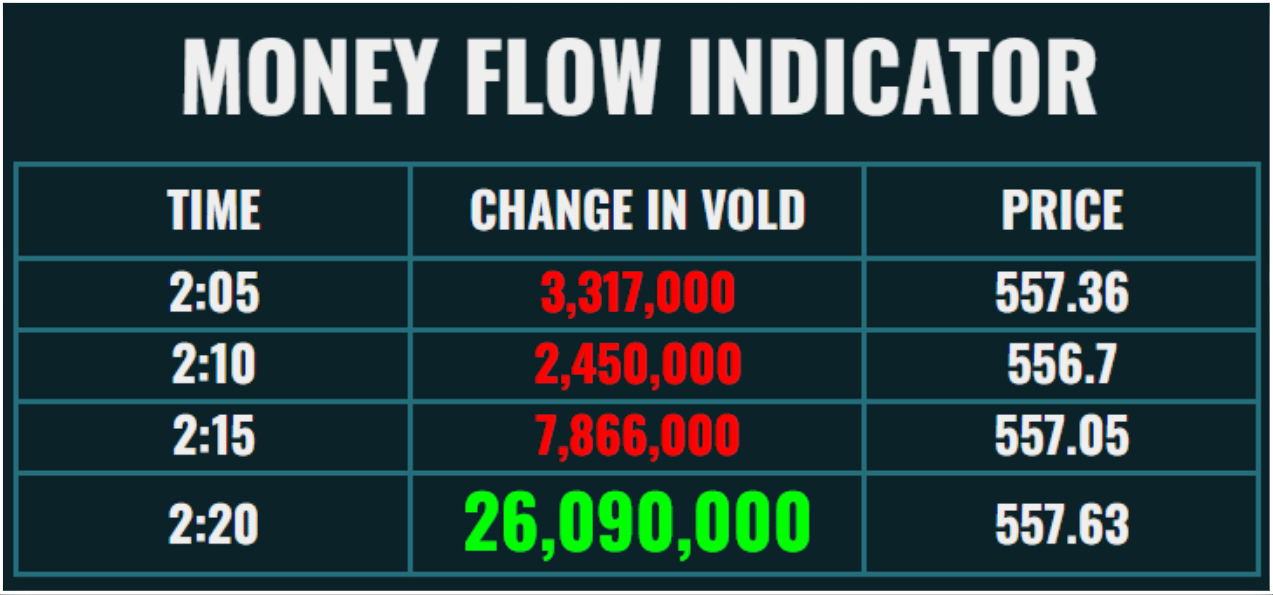 According to my research at exactly 2:20 PM - right in the middle of the selling frenzy - my Money Flow indicator would have flipped bullish. |