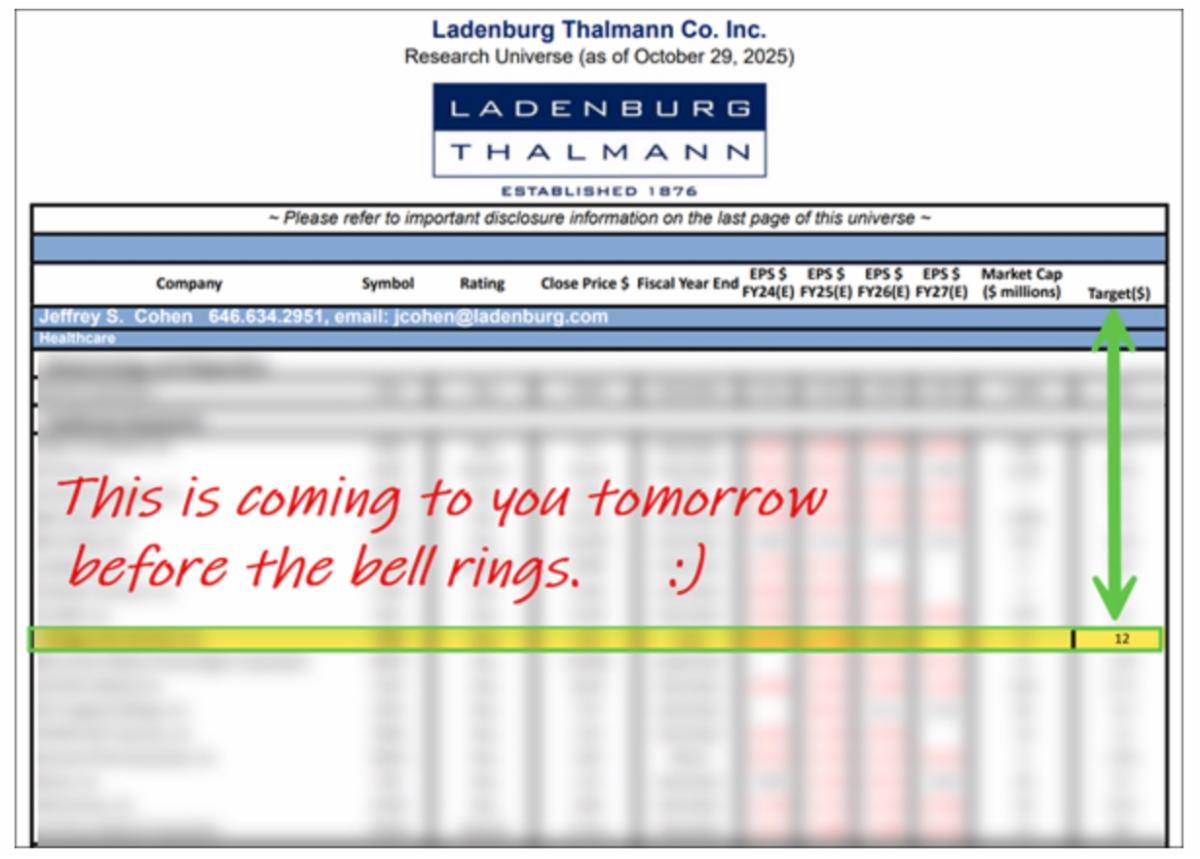 Tomorrow morning — Thursday, October 30, 2025, before the opening bell rings — we’re unveiling a little-known MedTech company that just landed on our morning watchlist.
