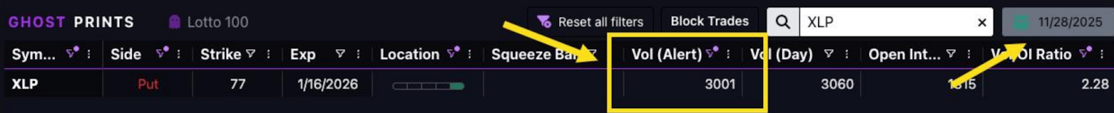 XLP (Consumer Staples): 3,000 put contracts hit the January $77 strike after the sector rallied 3% in a week. |