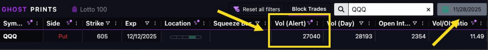 QQQ: 27,000 put contracts traded in a single block. Someone rolled from $585 strikes to $605 strikes. |