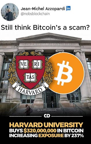 Ron Howard Voice: “It was speculation…” Harvard also famously lost $1.8 billion under Larry Summers's guidance (that guy’s having a week). Bitcoin is the extreme Beta bet that liquidity conditions will expand… When the liquidity cycle peaks and we have another “winter” - this will go down for a while. Then we’ll all go back and wonder how so many smart people at Harvard temporarily got it wrong. The simple answer: People don’t understand how the financial system works… Final Question…Garrett, when do you sleep? Sunday. Enjoy your weekend… And stay positive, Garrett Baldwin About Me and the Money Printer Me and the Money Printer is a daily publication covering the financial markets through three critical equations. We track liquidity (money in the financial system), momentum (where money is moving in the system), and insider buying (where Smart Money at companies is moving their money). Combining these elements with a deep understanding of central banking and how the global system works has allowed us to navigate financial cycles and boost our probability of success as investors and traders. This insight is based on roughly 17 years of intensive academic work at four universities, extensive collaboration with market experts, and the joy of trial and error in research. You can take a free look at our worldview and thesis right here. Disclaimer Nothing in this email should be considered personalized financial advice. While we may answer your general customer questions, we are not licensed under securities laws to guide your investment situation. Do not consider any communication between you and Florida Republic employees as financial advice. The communication in this letter is for information and educational purposes unless otherwise strictly worded as a recommendation. Model portfolios are tracked to showcase a variety of academic, fundamental, and technical tools, and insight is provided to help readers gain knowledge and experience. Readers should not trade if they cannot handle a loss and should not trade more than they can afford to lose. There are large amounts of risk in the equity markets. Consider consulting with a professional before making decisions with your money. |