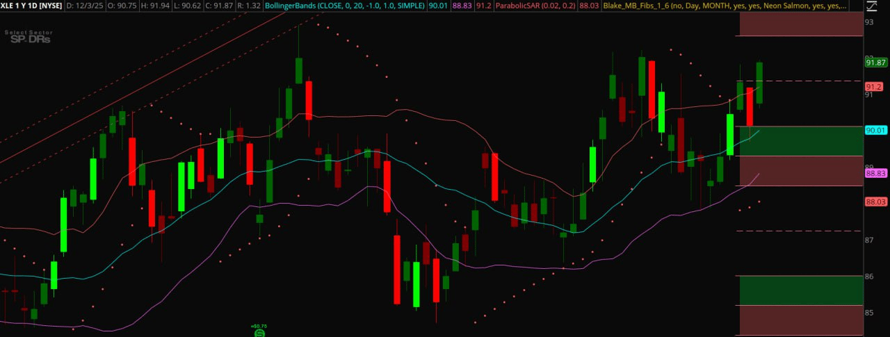 XLE just gave me exactly what I want to see. The green line turned from 58 to 62 - that's my buy signal. We started December with new support levels, and even though we pulled back yesterday, the setup is intact. |