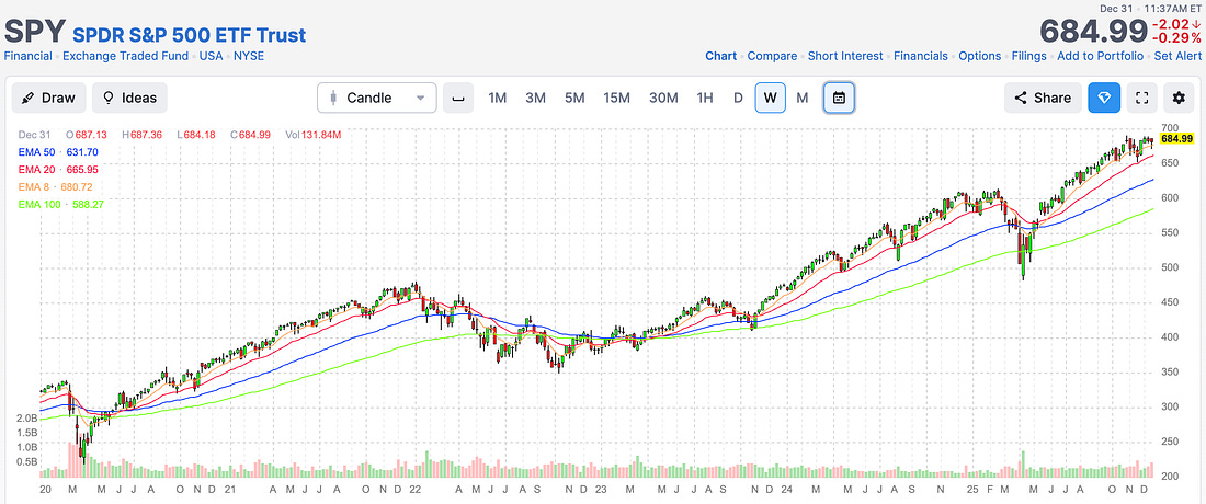 Here’s that combination of images… Take this as you will. And I invite feedback on this observation. I’ve said that the markets are front-running liquidity expectations. You might need to squint a little bit. Hey… causation/correlation… and all that. I could be wrong. But it’s wild to look at and a reminder that despite all the rate hikes and “Quantitative Tightening” we’re operating in some of the loosest economic conditions since the months following COVID. And that’s been good for equities since the 2022 downturn. Wrapping It UpI hope that everyone got a chance to see the interview, and I want to welcome the many new readers who joined us this week. I’m highly committed to continuing my studies, analysis, and theories on the markets and testing them. I long suspected that what I was taught across various schools was somewhat incomplete… or had been undercut by monetary and fiscal forces that we’re still trying to understand honestly. So, I started to fuse a lot of things together… You can see a lot of the sources I’ve fused together over the years right here… Or in that How the Stock Market Works (The Wave Speech) presentation. And I think this has been the year when more people than ever have seen the markets for what they are. What Howell has noted is that it’s a refinancing machine that does very well for momentum-based strategies. And people are paying attention, given his rank on Substack. Timing those strategies has been the highlight of the last five years of my work with people like Tim Melvin, Scott Dunn, and others and studying the collective works of these individuals. Given that I believe all roads will continue to lead to more debt and monetary inflation, I will trade these strategies until they break… but also continue to explore other ways for people to build and protect their money - hence the focus on the extraction strategy over at Postcards. Finally, I will be back on Friday with my 2026 Outlook. It will be much different than the ones we have done in the past - covering the big themes that include…