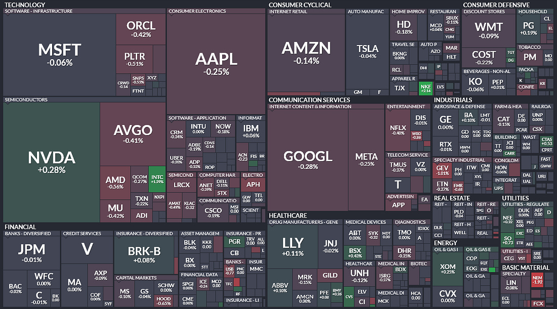 Momentum - Russell Pressure RemainsMarkets are shopping around with no real conviction. The S&P slipped another 0.1% Tuesday for its third straight down session, but the weakness is showing up unevenly. The Russell dropped three-quarters of a percent while the S&P and NASDAQ held up better. The Poor Man’s Intraday pressure on the Russell closed Tuesday at -26. SPY and QQQ are still hovering near even. Capital isn’t rushing out, but it’s not coming in either. Programs are set to maintain through year-end, and with volume at 55% of normal, there’s nobody around to change that. Momentum readings confirm the split. The Russell turned red while SPY and QQQ held green. Eight sectors weakened yesterday, leaving just four with positive readings: Materials, Communication Services, Healthcare, and Real Estate. Everything else is yellow or red. This is a holiday week. A lot of desks aren’t staffed, and that continues through Friday. Maintenance mode until real money comes back next week. Insider Buying: Massive Healthcare Buy