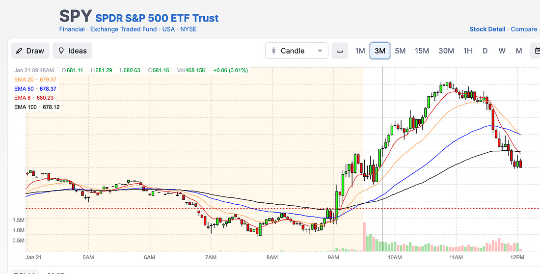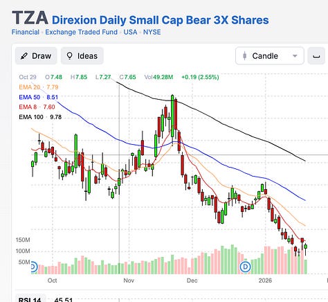 You are a free subscriber to Me and the Money Printer. To upgrade to paid and receive the daily Capital Wave Report - which features our Red-Green market signals, subscribe here. Five Questions To Ask Right Now (Seriously... Now)Everyone, everywhere is now an expert in Greenland and Japan.Dear Fellow Traveler: Well. Everyone, everywhere, is now an expert in Greenland and Japan. Mission accomplished. I can now walk anywhere in the country right now… and I can have a conversation with people who no longer look at me like I have three heads. Just two heads now… The news out of Japan wasn’t sudden… despite the headlines. As I told my Capital Wave subscribers… beware the rug pull in negative momentum conditions. Specifically, I said to watch the 8-EMA and 20-EMA lines on the three-minute chart. This was the chart I sent this morning… Then, it came like clockwork… When the 8 breaks under the 20… the selling can commence… BANG This is how it works. Lower highs and lower lows when these events transpire… Now… let’s zoom out. It’s Time to Understand… This Is SeriousThis ongoing car crash that is the Japanese bond market has been in focus here at Me and the Money Printer since August 2024. And while we’ve pointed the camera at this story and warned about it, we'd hoped the scenario would end differently. It’s ended more stupidly. Despite an obvious budget crisis, Japan’s prime minister proposed more government spending and tax cuts. The same thing happened in the United Kingdom in 2022, culminating in the ousting of Liz Truss. We’re rhyming history right now… The Fed’s reserve management efforts are a callback to March 2023 and the SVB Crisis. The repo efforts are throwbacks to the 2019 market spasm. The Japan story is a throwback to August 2024 and the several times that we’ve seen flare-ups in that bond market. The Greenland tensions are linked back to COVID outflows and 2008 cross-border flows, with a dash of the April 2025 trade crash. It’s the same thing… over and over again. No doubt, the dip buyers are here in full force today. (They tried…) But without intervention by the Bank of Japan (and that’s asking a lot after their never-ending efforts to cool fears), this market is at the onset of a new test. We’ve already seen massive amounts of stimulus announced from Japan… We have the Federal Reserve plugging the money markets with $40 billion a month… We have the U.S. government buying $200 billion in Mortgage Backed Securities… And we’re still seeing six-sigma events internationally… We’ve had at least one four-sigma event each year back to COVID… This is our first big one this year. Imagine where we’d be without all this support… If investors throw in the towel, this could get interesting fast. The Russell has turned Red again (S&P 500 is Yellow) - and this is now the fund to watch… Yes, small caps - which just had a huge run to start the year - are now about to take a beating if this market can’t find the footing. The probability of a reversal on the Russell 2000 right now is very high. So, do me a favor. Pull open your stock portfolio… Print a copy of it. Get out a pen. And then ask the questions that I’m about to ask you. This is not the time for vibes, narratives, or sunk-cost loyalty. We are about to do a stress test today. Your job is to answer these questions faster than everyone else. You ask why you own something. And if the answer isn’t capital efficiency, resilience, or necessity, you sell while markets are still two-sided. That’s not bearish. That’s responsible and professional. Here are five questions every investor should be asking themselves right now. Question 1: Why do I own this stock or asset today?Don’t ask why you bought it. Totally different question. I don’t care what the original thesis was. I want to know why you think that each position deserves YOUR capital right now… in this very market. Every… single… position. This distinction matters because negative momentum/liquidity events make your entry point irrelevant. The market stops caring about when you bought and starts pricing present utility under stress. Your cost basis is a personal accounting detail. The market doesn’t know it, and it doesn’t care. You don’t get ‘take-backs’ later. This question forces you to separate present utility from past conviction. You must separate capital efficiency from sunk cost. Most importantly, it forces you to re-evaluate every position as if you were initiating it fresh today. If you can’t explain why a stock earns capital right now, you’re defaulting to inertia. In volatile regimes, inertia is expensive. Holding becomes a choice, and choices require justification. If you can’t answer that question… dumb it down. Ask: Would I buy this today, at this price and size, with fresh cash? If the answer is no, the current position makes no sense… Question 2: Who is the marginal seller if this gets worse?Prices are not set by the average buyer in the market. They’re set by whoever has to sell next. This is known as the marginal seller. In calm markets, that marginal seller is usually a discretionary investor making a judgment call. In stress regimes, the marginal seller is rarely thinking at all. This is one reason why closed-end funds detach from their net asset value and experience indiscriminate selling. It makes no sense on the surface until you realize that someone needs cash because they have taken on too much risk. This marginal selling aligns with the unwind of leverage. It’s the result of a risk model triggering or of volatility causing funds to rebalance their positions. Or worse, it’s just a bunch of margin calls that are forcing liquidation of positions. This question exposes us to the risk of forced selling and indicates which positions are now vulnerable to non-discretionary exits. Consider a stock that is widely owned by leveraged funds, sits in a large n