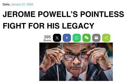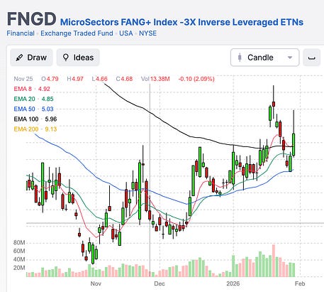 What’s your ranking? Throw it in the comments section below. I’m always looking for something new… or to revisit things that I might have under-appreciated in the past. Now… let me get to the other things I think… Thing I Think No. 2: We’re In a Financial Crisis, Act Like ItGood grief… It’s the first time that we’ve ever had the markets at all-time highs, and our reversal probabilities are elevated. This means that funds are dancing beside the door right now, and it’s very clear that few people trust this market. As I explained the other day, we’re in a situation where algos and CTAs are driving the bus. And if they don’t like one headline or one earnings report, they will flip the switch and start dumping. The Federal Reserve and the Bank of Japan are backed into a corner right now. It’s very clear at the institutional level that leverage is under serious pressure. The FNGD, which is our good friend to help us understand leveraged positions… is screaming at us again from above its 50-day moving average. Imagine if the Fed weren’t buying $40 billion a month in short-term Treasuries to support bank reserves… imagine if Japan weren’t pumping stimulus. Imagine if we weren’t engaging in the most rampant level of financial engineering since… August? Japan’s financial institutions are facing the same challenges that impacted the British pension system back in 2022. Elevated rates drive down bond prices, creating a situation where institutions can’t sell without incurring major losses. This is what happened to Silicon Valley Bank. But it’s made worse by the fact that the insolvent bank in Japan isn’t MUFG Bank (Mitsubishi UFJ Financial Group). It’s the Bank of Japan itself. Just Dario points to a $1.9 trillion loss on paper in that market right now. The Fed is already doing what it can to hold the line on our banking system and to help support Repo markets. The question is what sort of break-the-glass plan they now have for Japan. Are we going to buy Japanese bonds? Is Japan going to create a Bank Funding program as we did in 2023? We’ve been kicking the can down the road since August 2024, when the Nikkei crashed… And now we’re in even more treacherous territory. We’re in the middle of a financial crisis. We need to be honest about it… Thing I Think No. 3: China is Driving the Gold Bus…I had the pleasure of joining Michele Steele today at StockTwits for an interview that will come out soon. I’ll share the link when it arrives. She and I had a conversation about China, gold prices, metals, and more… The key thing I want to stress is that we’re not seeing a rally in metals. We’re seeing repricing. Gold, silver, copper, platinum, and even palladium are all moving together, violently, and at the same time, oil is firming despite mixed growth signals. That combination is concerning. It happens when something is wrong underneath the surface. Start with gold. This move is not being driven by ETFs, futures traders, or retail speculation. It’s being driven by physical demand routed through Shanghai. Chinese gold warrants are direct claims on metal sitting in domestic vaults, traded through China’s CIPS system rather than SWIFT. That means central banks and sovereign entities are accumulating gold completely outside Western financial infrastructure. Those buyers don’t trade momentum or hedge pullbacks. They buy more and more to protect their balance sheets. Physical demand is now tight enough to force fast money to chase. Gold’s monthly RSI just hit the highest level ever recorded. That doesn’t mean the move is over. It means it’s unstable. Which is why I was willing to sell the other day… and let the mania subside… Silver is telling you the same story, but with leverage. Silver’s both a monetary metal and an industrial input. When silver moves like this, it usually means the market is hedging against currency debasement and future supply constraints simultaneously. That’s why silver volatility has gone vertical. Copper confirms this, too. Copper doesn’t move out of fear. It moves on Chinese monetary policy, infrastructure, energy, and real demand. When copper breaks to new highs alongside gold, it signals that capital is preparing for large-scale spending on electrification, grid buildouts, and AI infrastructure, while also hedging against monetary risk. Copper has $7 upside, silver somewhere in the $141 range. But it’s going to be violent along the way. I think it’s possible gold slumps hard in the coming days amid ongoing pressure in equities and questions about liquidity in the system. It’s a very important time to learn about technicals, target oversold conditions if they arrive, and reconsider the levels of risk you’re willing to take as a trader and investor. Thing I Think No. 4: This is Funny to MeFinally. I had to say that I saw this headline when I was pulling up the piece on Japan, and I laughed… The truth is… every central banker engages in this battle. Arty Burns had to go to Yugoslavia for a speech to finally defend his policies in the 1970s. Janet Yellen traveled to Australia last year for the softball interviews of softball interviews. Ben Bernanke wrote a book with a self-aggrandizing title… Powell will go to Georgetown and teach… or go run a university somewhere… and most definitely write a book. It will have a title that sounds insane to outsiders, like… “Holding the Line…” “Soft Landing…” or… “Whatever It Takes (AGAIN!)” He’ll be on the cover… with his arms crossed, proving that he means business. Can’t wait… We have moved from one crisis to the next over and over again since Powell showed up… and when he departs, it’s going to be fascinating how the Fed adjusts and how the market reacts. One thing is for certain though… they’re going to keep printing money. Stay positive, Garrett Baldwin About Me and the Money Printer Me and the Money Printe