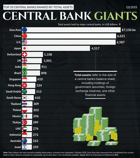 You are a free subscriber to Me and the Money Printer. To upgrade to paid and receive the daily Capital Wave Report - which features our Red-Green market signals, subscribe here. Dear Fellow Traveler, On January 28, 2026, the General Manager of the Bank for International Settlements (BIS) received an honorary doctorate in Madrid. Nobody covered the speech he gave. We’ve seen nothing in Bloomberg or the Financial Times. That’s telling because what the man said wasn’t good for confidence. Pablo Hernandez de Cos already runs the central bank of central banks in the BIS. He’s also one of the favorites to soon run the dumpster fire that is the European Central Bank. He used his speech to admit that central banking is operating beyond the edge of its own maps. He used a nautical metaphor to explain, because who doesn’t own their own yacht in this era of never-ending monetary expansion? For him, a clear mandate is the anchor. Central bank independence would be the hull. And accountability is the mast. But the ship also needs “sails, a rudder, a compass, and maps.” Central bankers reach for metaphors when precision fails them, and if accountability is the mast, then that explains why we’ve been drifting at sea since 2008. He listed the forces battering the vessel… deglobalization, aging populations, technological change, and “high and rising public debt.” These forces are increasing uncertainty about “some of the basic variables for effective monetary policy formulation.” He basically admits that the policy rate… the one number the entire financial system is built around… is a guess. And they’re telling us the margin of error just got wider. What Is Reality?Then came the word that matters most in the entire speech. Realism. It wasn’t hallmark words of central banks like “confidence” or “forward guidance.” It wasn’t that “we have the tools” to prevent a crisis. He said, “Realism.” Which is what institutions call it when they’re lowering the bar so failure looks intentional. Central banks should “focus on what they can foresee and deliver.” He said “forecast errors” will be high. So, don’t bother doing that work, I guess. Instead, central banks should only pursue objectives “for which it is well equipped to achieve.” Anything beyond that “would increase reputational risks and undermine their credibility and independence.” That’s the head of the BIS telling his own profession to narrow the mission before someone narrows it for them. The Balance Sheet ConfessionThen he turned to the balance sheets. He said the design of asset purchases must “facilitate a rapid reduction once the reasons for their implementation have disappeared, to minimise concerns about financial stability and unwanted side effects.” The balance sheets of every major central bank is still bloated, as evidenced by the chart tracking their assets at the end of the third quarter of 2025. [Note: The chart accurately shows balance-sheet totals, but it mixes national central banks with the consolidated Euro Area.] Now, he’s admitting that central bank balance sheets were not designed for a clean exit. That the unwinding creates financial instability. The Fed went from $900 billion to $8.9 trillion and is now trying to shrink while the government issues record debt. The money printer was easy to turn on. But turning it off is the part nobody really planned for. Same Song, Different PodiumThen came the same complaint of people who don’t have the bravery to do their jobs. “We must also be aware of the limitations of what monetary policy can achieve on its own,” he said. He’s saying that central banks were forced into this role because politicians refused to do theirs. And he’s saying… we can’t carry that weight anymore. This is the same confession former Fed Chair Arthur Burns made in Belgrade, Yugoslavia, in 1979. The world ignored Burns, and what followed was 13% inflation and the most painful rate-hiking cycle in American history. Burns called it “the anguish of central banking.” Hernandez de Cos, 47 years later, is calling it “realism.” It’s a different timeframe, but it’s the same surrender. The money printer operators are telling you, in the most diplomatic language possible, that the machine is less reliable than advertised, the maps are outdated, and they can’t do this alone. When the people who run the system start managing expectations downward… what usually follows is policy failure or regime change. But probably both. Buy the chokepoints of the economy… Stop speculating on profitless junk. And stay positive, Garrett Baldwin About Me and the Money Printer Me and the Money Printer is a daily publication covering the financial markets through three critical equations. We track liquidity (money in the financial system), momentum (where money is moving in the system), and insider buying (where Smart Money at companies is moving their money). Combining these elements with a deep understanding of central banking and how the global system works has allowed us to navigate financial cycles and boost our probability of success as investors and traders. This insight is based on roughly 17 years of intensive academic work at four universities, extensive collaboration with market experts, and the joy of trial and error in research. You can take a free look at our worldview and thesis right here. Disclaimer Nothing in this email should be considered personalized financial advice. While we may answer your general customer questions, we are not licensed under securities laws to guide your investment situation. Do not consider any communication between you and Florida Republic employees as financial advice. The communication in this letter is for information and educational purposes unless otherwise strictly worded as a recommendation. Model portfolios are tracked to showcase a variety of academic, fundamental, and technical tools, and