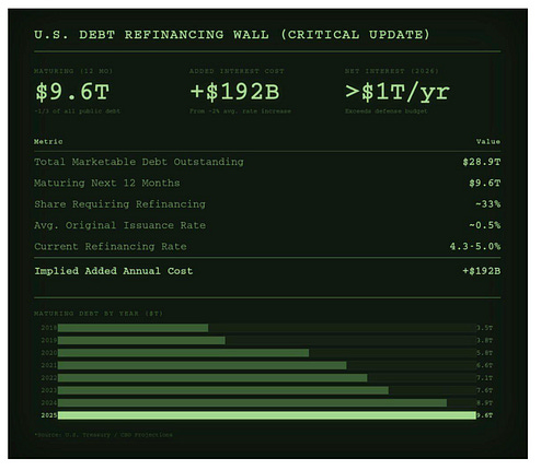 You are a free subscriber to Me and the Money Printer. To upgrade to paid and receive the daily Capital Wave Report - which features our Red-Green market signals, subscribe here. Dear Fellow Traveler: I’m coming in a little late in the day… I’ve been writing my next issue of Postcards from the Edge of the World… more or less… this afternoon… So my goal of a Chart Party… Has turned into analysis of one chart… In recent weeks, technology stocks have been under pressure due to ongoing concerns about the impact of AI on brokerages, software-as-a-service (SaaS), law firms, and other industries it might disrupt. Two weeks ago, Goldman’s trade desk called the bottom on that trade… for a hot minute. Then, JPMorgan came out this week with a dedicated research basket of stocks they called “Top Mispriced Stocks Amid AI Disintermediation”. In this chart… the analysts say that prices have outshot fundamentals… This is a big list… where the hell does someone even start with this list of stocks… Yeah… thanks I suppose… Two Things…I want to stress something important. They’re saying that prices have outstripped fundamentals. You know what they didn’t mention? The refinancing challenges on the horizon for the U.S. economy… About $9.6 trillion in U.S. debt will mature in the next 12 months… all at the same time that loads of corporate debt will need to be refinanced… So… U.S. debt (barring some serious monetary expansion) could easily crowd out capital on that technology side… especially the software names… But you know what? Forget all my money printer analysis on liquidity… And let’s look at the thing that I spend more time on during my day than anything… Insider buying… A few years ago, I ran a big analysis of the stocks Cathie Wood kept buying in the face of the 2022 downturn. And what I saw was a little interesting. There were billions of dollars in stock sales in the Top 10 holdings, but only ONE purchase of stock via a direct Form 4 filing over the previous years… The thing I had to ask… If the stocks were cheap… and the fundamentals were so overshot, why would Cathie Wood buy a stock… if the executives weren’t doing it. Yes, they are compensated in stock… but we’re being told by JPMorgan that these stocks are overshooting fundamentals. I would be way more content to hear this from the Chief Financial Officer or the Chief Executive Officer. No one knows the balance sheet and the valuation better than the CFO… No one should know the macro- and micro-worlds better than the CEO… So… I went back and just looked at this list through the lens of insider buying… These are the only names on the list that have seen any insider buys in the last three months… Now… one more addition… let’s only screen for CEO and CFO purchases only…