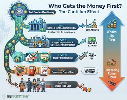 The S&P 500 has returned about 9.5% a year over the long run. Bühler derives this by decomposing returns into debasement, long-term trend, and speculative components. Given roughly 4% annual debasement of the US Dollar since 1900, that means about 40% of the total return is just the currency getting smaller. Four out of ten points. That portion isn’t driven by earnings growth or productivity. It reflects the monetary expansion component of returns. Your portfolio figures aren’t wrong… but depending on how you measure monetary dilution, you may not be as rich as you think you are. It’s like finding out your house “appreciated” 60%, and then learning that a big chunk of that was just the dollar losing value. You didn’t get richer. You got NOMINALLY LARGER. There’s a big difference between the two, and that gap compounds. Winners in The GapDebasement and inflation are related, but they’re not the same thing. The gap is the monetary dilution that doesn’t show up in consumer prices. And if Bühler’s framework is right, this is where a quiet wealth transfer originates. That gap flows into assets. Here’s the recap: high excess debasement compared to inflation in the early 2000s, leading up to the Global Financial Crisis. Banks created massive amounts of capital that flowed into the shadow monetary base. Mortgage lending swelled, but consumer prices were fine. Housing prices, on the other hand? You remember. After 2020, we had the biggest peacetime money creation in history. Asset prices moved immediately. Inflation took one to three years to show up at the store. By then, asset holders had already moved first. Bühler plotted this gap. He measured debasement minus inflation… against the UK Gini coefficient, a standard measure of inequality. Turns out the two move together more than you might expect. Correlation isn’t causation. But it’s uncomfortable, especially for policymakers. The mechanism he describes is consistent with what economists call the Cantillon Effect… Money enters the economy through pipes, not rain. Asset owners get the debasement premium first. Wage earners get the CPI adjustment later. The spread between those two numbers may represent a silent transfer from people who earn money to people who own the things money chases. Bühler is careful to note that many factors drive inequality… Those factors include demographics, regulation, and technology. But his data suggests monetary debasement should be considered as a contributing factor, not dismissed. Maybe someone in Congress will put two and two together… A Few Notes…Now, remember, this is a working paper, not a finished doctrine. Bühler isn’t arguing CPI is fake. He’s arguing CPI doesn’t measure everything money does. Debasement is about monetary expansion relative to real output. Inflation is about consumer prices. Sometimes they overlap. Sometimes they don’t. The paper itself lists meaningful limitations… For example, GDP measurements can be wrong, and any inequality analysis is a correlation, not a proven causal link. Bühler explicitly calls this an invitation to collaborate, critique, and improve the framework. Challenge accepted… I’m also sharing this to invite others to do so, and because the core question deserves a wider audience, not because it’s settled science. If he is right, we might have been eyeing the wrong scoreboard. But if you already understand that liquidity is the market, you’re positioned to think about this clearly. If Bühler’s framework holds, it should change how you think about what you own. Next time your portfolio is up 9%, and you feel good about it, consider subtracting the debasement rate… and the inflation rate. What’s left is your real return after the currency finished shrinking around you. Stay positive, Garrett Baldwin About Me and the Money Printer Me and the Money Printer is a daily publication covering the financial markets through three critical equations. We track liquidity (money in the financial system), momentum (where money is moving in the system), and insider buying (where Smart Money at companies is moving their money). Combining these elements with a deep understanding of central banking and how the global system works has allowed us to navigate financial cycles and boost our probability of success as investors and traders. This insight is based on roughly 17 years of intensive academic work at four universities, extensive collaboration with market experts, and the joy of trial and error in research. You can take a free look at our worldview and thesis right here. Disclaimer Nothing in this email should be considered personalized financial advice. While we may answer your general customer questions, we are not licensed under securities laws to guide your investment situation. Do not consider any communication between you and Florida Republic employees as financial advice. The communication in this letter is for information and educational purposes unless otherwise strictly worded as a recommendation. Model portfolios are tracked to showcase a variety of academic, fundamental, and technical tools, and insight is provided to help readers gain knowledge and experience. Readers should not trade if they cannot handle a loss and should not trade more than they can afford to lose. There are large amounts of risk in the equity markets. Consider consulting with a professional before making decisions with your money. |