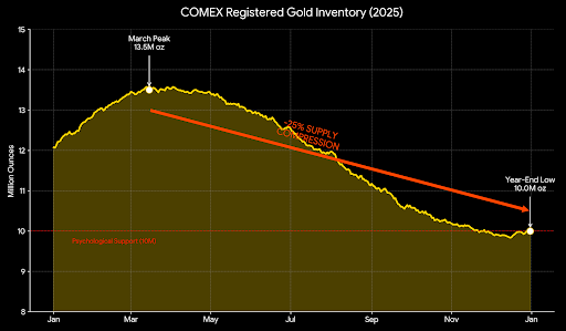 | Dear Fellow Investor, Let me give you a number. 90 to 1. That's how many paper gold claims exist for every real ounce in COMEX vaults. Ninety promises. One ounce of metal. It's like a game of musical chairs. Except there are 90 players. And only 1 chair. When the music stops, 89 people lose. And the music IS stopping. COMEX gold inventory dropped 25% last year alone. The gold is flowing East. Shanghai. Mumbai. Moscow.  On March 31st, contract holders can demand delivery. If too many show up at once... You've seen what happens. They change the rules. They close markets. They ban buying. Every time, paper holders got crushed. Mining stock holders made fortunes. I've found the one stock at the center of this crisis. Get the name and ticker here >>> "The Buck Stops Here" Dylan Jovine CEO and Founder Behind the Markets