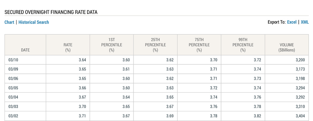 Signal two feels like it’s flashing. Signal one is close. Signal three is the 5-year bet that will start to play out over time... The PunchlineWhen a $2,000 drone can take out a $100 million tanker, the insurance spreadsheet starts looking like a horror movie. That permanently changes the economics of the Strait of Hormuz. Meanwhile, on the U.S. infrastructure side, our pipelines are built and secure. If this trend continues, the winners are not tanker companies. The winners are the boring toll booths. Companies like Energy Transfer (ET), Enterprise Products (EPD), Kinder Morgan (KMI), and the LNG exporters that own the terminals on the Gulf Coast. They collect the toll no matter what happens 7,000 miles away. Many managers are looking at this situation right now and deciding where they want to be in five years. Chevron (CVX) and Exxon (XOM) are already deciding how much future capital to commit to Iraq and other Gulf State nations. Things could change very quickly in the coming months. In conclusion, Stay positive, Garrett Baldwin Preview for TomorrowThis is the chart you should be watching… The Secured Overnight Financing Rate (SOFR), something I usually called “Funding Rate” because I read too much… This is a problem, as secured lending should not cost as much as unsecured lending does… I’ll explain what’s going on with SOFR and why it matters as we accelerate toward tax season… a time that money will flow out of money markets and banking reserves. In Case You Missed ItEach morning, I’m doing a quick daily recap called The Morning BRRRR… taking readers through what’s happening in the markets. It’s posted on my Substack for free. What Do You Mean by “Momentum?In recent weeks, I’ve written articles that dive into the key factors driving markets… Money Printer 102 is called “What Do You Mean, Momentum?” Today, I shot a quick video to explain what we’re talking about… So, if you’re new here and just want to listen, here’s the video. Or see the article above. Please share on social media… And, if you’re not a member, get 30% off your subscription… today. About Me and the Money Printer Me and the Money Printer is a daily publication covering the financial markets through three critical equations. We track liquidity (money in the financial system), momentum (where money is moving in the system), and insider buying (where Smart Money at companies is moving their money). Combining these elements with a deep understanding of central banking and how the global system works has allowed us to navigate financial cycles and boost our probability of success as investors and traders. This insight is based on roughly 17 years of intensive academic work at four universities, extensive collaboration with market experts, and the joy of trial and error in research. You can take a free look at our worldview and thesis right here. Disclaimer Nothing in this email should be considered personalized financial advice. While we may answer your general customer questions, we are not licensed under securities laws to guide your investment situation. Do not consider any communication between you and Florida Republic employees as financial advice. The communication in this letter is for information and educational purposes unless otherwise strictly worded as a recommendation. Model portfolios are tracked to showcase a variety of academic, fundamental, and technical tools, and insight is provided to help readers gain knowledge and experience. Readers should not trade if they cannot handle a loss and should not trade more than they can afford to lose. There are large amounts of risk in the equity markets. Consider consulting with a professional before making decisions with your money. |