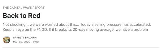 Now… undo all that reading. “Priced in” is a term that always confuses me. I think we tell ourselves that things are priced properly to justify taking action, just to take action. I won’t bore you with the Efficient Market Hypothesis… Instead… I’ll tell you some stories. Up front, know that I view the markets and the world very differently than most other people… I’m not saying that I’m right… and I’m not saying that these extreme examples mean that markets don’t run well on information… especially in calm times. I have been on a quest for an alternative theory to explain these markets… especially after 2008. I’m also pointing out that tail risks are there and clearly mispriced… but people start claiming that things are efficient… that’s where the EMH concept falls apart to me... My stories don’t make the market… But my stories shape my experience and worldview. Back in January 2020, I was running a trading service for a Baltimore-based publisher. We had many technology stocks in the portfolio. And at the time, we were running at all-time highs in the market. Still, I was keeping an eye on a brewing crisis in China, a pandemic that was spreading exponentially each day. A former colleague was out there talking about COVID and issuing some pretty serious warnings about the spread of this virus… the nature of exponential spread. I reached out to him and said, “Be honest, what is the worst-case scenario right now?” He said, “Garrett… when this hits… There won’t be any planes in the sky in late March.” It was largely a gut feeling then… momentum was strong. I started selling most of the tech portfolio names that week, stocks that would ultimately lose 50% of their value over the next 60 days. I didn’t do so because I was afraid. I was taking gains… and a few small losses… but I didn’t like the thought of the associated tail risks, as I’ve always ascribed more with the world of Nassib Taleb and Fat Tail analysis than I have with Burton Malkiel and A Random Walk Down Wall Street. If I was wrong… oh well… I took gains… and people could laugh at me while the markets burned to new all-time highs. Which they did. But then… something happened. On February 21, 2020, the S&P 500 signal we use turned negative for the first time. And I started to feel a sense of concern that, even though we were near all-time highs, the markets were miscalculating something. That was still in the early stages of the COVID downturn… I’d hedged that week (February 28). I’d largely shifted to cash. I’d then watch as a demand shock cratered the equity markets, fueled shutdowns, and raised questions about how serious the downturn could go. March 2020 was a very strange time. But here’s the thing I remember most about the beginning of that selloff… On February 25, 2020… some of the top bulls in the market were telling us that all of this situation… that the downturn and the worst of what COVID bad news could be… That it was “priced in.” It wasn’t priced in. Yes, it’s easy to mock the risk-averse… the people who bail on equities first in fear… It’s easy to say that markets do have a bias to the up and the right, and that monetary policy helps fuel that. But… markets are heavily behavioral… and best and worst case scenarios - drive a lot of sentiment - especially at the retail level… which has been buying the dip over and over again for the last few months. Look… I write this calmly. I don’t like Doom and Gloom. I look for upside… But my job… my No. 1 job here… is risk management for my readership. This isn’t your only letter… I know that. I’m trying to show you the optimal times to buy many of the recommendations other people make. Because if we’re in red territory on momentum… that’s dangerous… and there are underlying reasons for this. That’s the entire purpose of measuring momentum, liquidity, and insider buying for you here and at the Capital Wave Report. So… let’s talk about this current cycle. Our signal turned negative again on January 28, 2026, and we’ve seen gold/silver have a deep correction, momentum turn sharply sideways, private equity stocks fall out of the sky, and South Korea experience a massive drop. There’s palpable fear out there… But that’s all happened while the S&P 500 has held within 4% of all-time highs. I argue markets have seen support from the structure of the market and from ongoing monetary and fiscal support in financial markets. When I was on the other day with Michael and Josh, we talked about things that could really break this market. And I forgot to mention my argument from previous issues in Capital Wave and views for 2026. That’s the threat of foreign money going home fast again. Foreign demand for U.S. stocks has been ample, despite all the deeper concerns about broader geopolitics and rate worries in Japan. But when money starts to move out of the U.S. market and go home, that is where market shock can amplify… cross-border flows can lead to selling in MAG7 and AI stocks that have been the darlings of this liquidity cycle. Foreign capital loves to flow into the United States when we are engaging in Quantitative Easing (QE) or QE-like programs (which seems like a paradox but has shown up in several key academic studies in the last decade, as foreigners chase equity returns, since there’s a relationship between QE and valuation expansion). But those outflows can cascade through leveraged funds… and even passive funds, which may be forced to sell. These things happened in 2008 and 2020. And that happened again in 2025… during that April “trade” downturn. What Happened in 2025… It Wasn’t Priced InThat downturn… we caught it on February 21, 2025… again… and the FNGD had confirmed on the 24th that leverage was starting to unwind. Then… on March 5, 2025, after a downturn that followed that negative reading event… To