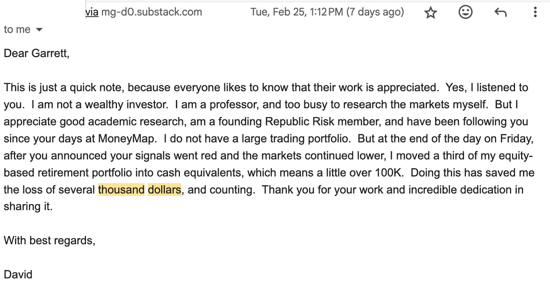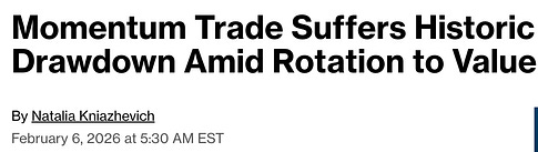 Revisiting Jan. 26 In "The Newsletter That Can't Be Sold"The importance of an equation... not a model... not an algorithm... but math.Dear Fellow Traveler: On January 26, 2026, I did something that most people considered a bit insane. I dumped my paper holdings of gold and silver ETFs and other funds… I tossed up my hands, and warned that something was wrong… deeply wrong… in what I called the Viagra and Popsicle Stick market. And I started to warn that investors needed to reassess their entire portfolios as we headed into tax season. Two months later, here we are… Private credit is melting down, bond yields are rising, this war is getting worse, oil prices are surging, and other unknowns remain… even as the Fed injects $40 billion a month into a broken banking system facing reserve pressure during tax season. On January 26, the cap-weighted average of our Momentum score turned negative, while our intraday momentum (a crude visualization at the time, though it worked) was breaking down. I warned about a “Risk Off” event… building on the back of private credit and the pressures associated with tax season, broader momentum, and the non-stop issues tied to speculation in metals, Japan’s market weakness, and whatever unknowns would soon arrive (turned out that the war was hell of an unknown). Days prior, on January 21, I encouraged everyone to look long and hard at their portfolios. I told readers to ask why they owned what they did (look at every single stock position), and if they didn’t have a good answer, to sell and raise cash. On January 28, our signal officially went negative. (The links include that insight). That week, people questioned how momentum could be negative, but markets were at all-time highs… as I explained, it’s not just about selling pressure (which was ample). It’s about reversal probabilities, too. We didn’t have to wait too long… On January 30, gold and silver collapsed from $5,500 and $120, respectively. On the morning of February 5, I warned… based on our data, it’s going to get really “loud soon.” And that day, we had the worst momentum selloff in the post-COVID era. This headline says it all from 24 hours later… South Korea stocks would later crash… again, momentum-driven… Private credit, which I have been warning about since the fall of 2025, only worsened. Then the war started, and now we have a compounding impact of rising oil prices, tight central bank policies (rate hikes coming?), collapsing metals, worsening collateral markets, and a stronger U.S. dollar weighing on everything… We’ve been on top of this not just since January… But since August 2024, days before the Nikkei crash… and if we really want to go further back, since February 21, 2020… People can say we got lucky with this macro-liquidity/momentum signal in January… But they’d have to explain all of the similar selloffs and momentum outcomes that I did in print or on camera on January 3, 2022; April 6, 2022; June 8, 2022; August 28, 2022; March 7, 2023 (days before the SVB blowup); August 1, 2024 (before the Nikkei crash), the December 10, 2024 warning letter I wrote from my hospital bed); February 21, 2025; March 26, 2025; and the multiple November 2025 signals on Japan/private credit, before the short squeeze I also called after the nation’s stimulus annoucement.) That’s the list of market calls that those copywriters and finpub executives who wouldn’t sell this letter demand from market editors all the time, so they can sell a successful financial newsletter… It’s called “A Track Record.” Turns out they did all of us here at Substack a favor... “Risk Off” Headlines are Way Too LateThe interesting thing is that I’m now seeing headlines suggesting that we are in “Risk Off” mode. Just two weeks ago, I explained that the people claiming this war was “priced in” didn’t understand how momentum really works and how liquidity operates. Around this time, I continued to beat the drum that “Cash is a position.” - something I’ve always done - and did back on January 30 - in Six Rules for Negative Momentum. The “Risk Off” articles and recommendations are now way too late… And it’s always this way… well, after the bigger institutions have exited. This isn’t our first experience with this… last year, our signal turned negative on February 21, 2025. Roughly 12,400 people read this article explaining that we were in a liquidity gap… and that we needed to watch the FNGD for clues on leverage leaving the system. The FNGD roared… and the stock market bled lower into March 12, 2025. Our signal stayed negative until March 26… (we called yet another a Short Squeeze along the way). It turned green for a day, and then collapsed into dust again… with the market cratering into April 7, when everyone suddenly started warning about the next Great Depression. They missed it two days later when we talked about how insiders loaded up… and eventually, when momentum formally turned green two weeks later. Well… Momentum is my sandbox… big, broad, and a great flashing light that connects the upstream plumbing of global finance with the performance of the equity markets. Now that we have a visual representation of this, it’s impossible to ignore. We are seeing the visualization of momentum breaking down in real time as liquidity and risk both… Why? Because of math. Because we can see flows exiting markets on the edge of the bell curve, signaling to retail traders and investors that risk is accelerating. For years, I was told no one wanted this newsletter by large institutions and executive teams who apparently only wanted to sell options products to strangers… But the product they were really selling, via sensational marketing, was “a feeling” of hope, not anything based on results or on a goal of retention. But I’m eager to show you - every day - that managing risk for investors is far more importa