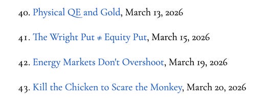 Howell’s focus on the Four Horsemen dragged me to my computer yesterday, where I wrote Postcards, and dug deeper into his view, and how I expect there to be ample places for capital to flood when it is time for that - as Alden put it - next Big Print. And how that will be a big boost for momentum… when and if it comes… Read more from Michael Howell (Don’t just read it… sign up for it…) Zoltan PozsarIt appears that someone woke Zoltan Pozsar up... His closely guarded, heavily coveted commentary has been circulating more than usual. A self-described ex-Lehman trader posted a screenshot of some Pozsar commentary suggesting that this situation is very different from what he’d thought. Pozsar described Iran as a subplot in a bigger battle between the United States and China. Pozsar says Trump is implementing “energy dominance” as a doctrine over Europe and China. And while China is hitting the U.S. on rare earth materials, he thinks the U.S. is making it harder for China to obtain advanced chips and energy security. It’s an extension of the ongoing Capital Wars that Howell describes in detail. But it’s clear the raw materials are much more visible, because the plumbing remains hidden. The Iran subplot is important… as authors Dr. Maszlee Malik and Wan Naim Wan Mansor in Middle East Monitor discussed on March 14. The question centered on whether the Iran War could “shake the petrodollar order.” They wrote: