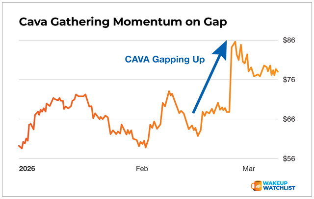 "CAVA closed strong on Friday and after some consolidation I believe it's ready to surge again." Nate Bear, Lead Technical Tactician, Monument Traders Alliance Publisher's Note: Is it time to buy or hide from the market? The indexes keep trying to break down – but our senior analyst Chris Johnson is going to show you why that won't happen. At 2 p.m. ET this Wednesday, Chris will be showing traders the deeper details of one-day selloffs. He'll also show you why certain stocks are actually bouncing back. Once you see the market this way, you'll track it daily. Click here to sign up today. - Stephen Prior, Publisher Markets opened in the red again yesterday as the conflict in Iran showed no signs of colling. My plan for this trading week is to stay light – no guns blazing. Instead, I'm looking for charts that are ignoring the macro noise and moving on their own terms. One of those tickers is Cava Group (CAVA). I'm looking to add to CAVA early and often this week. Here's why…. CAVA closed strong on Friday, riding continued momentum from a blowout earnings report. That gap up created a buy opportunity – and I believe we see a gap close and then some as the week plays out. Check out its chart below. You'll see a clear gap up, followed by some weekend consolidation. This is the kind of setup I love. With clear momentum, we just need a trigger for a gap close. |